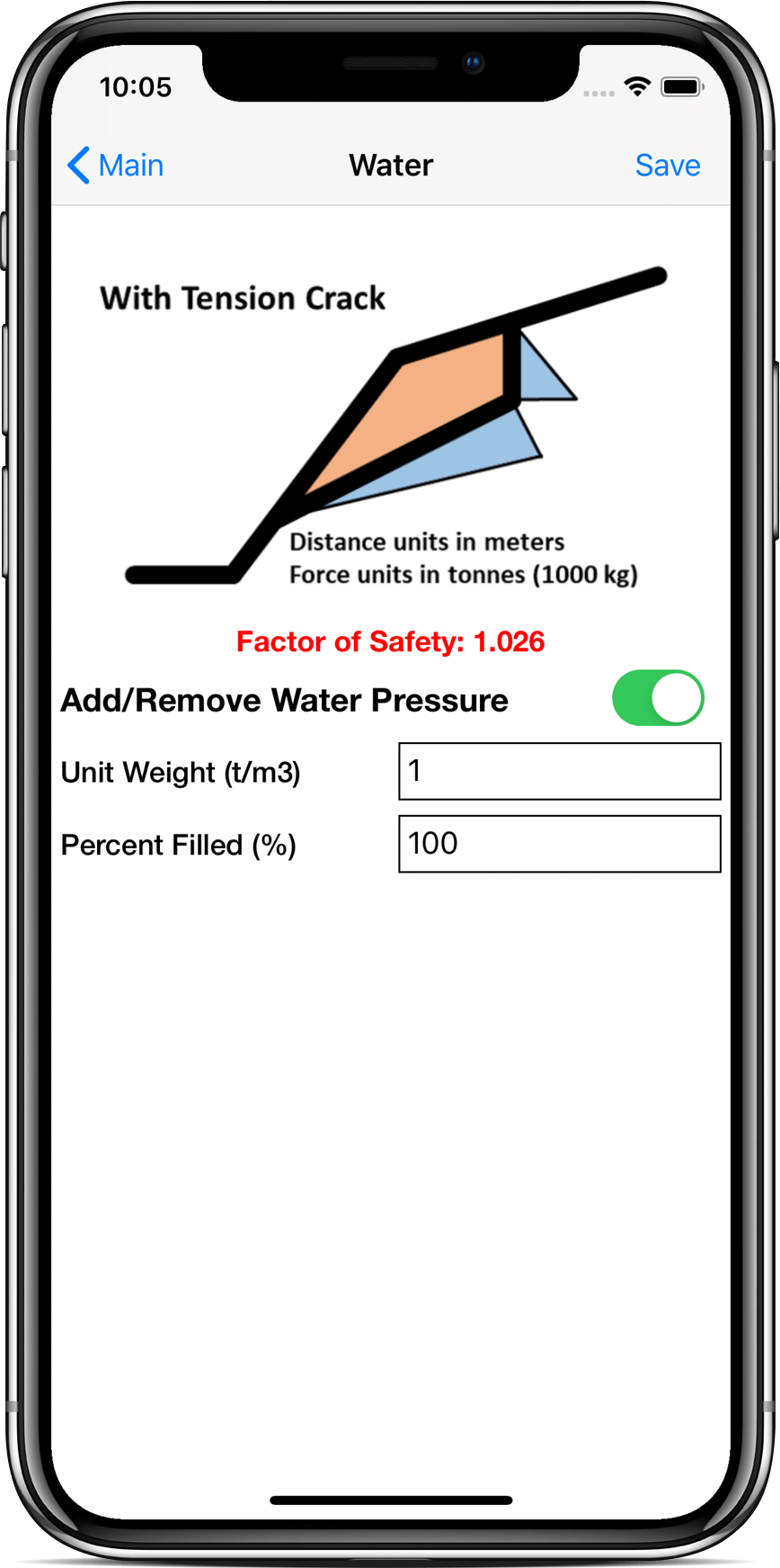 wSlope is designed to perform a quick and simple analysis on your phone device. wSlope is a simple to use program that uses block theory (Goodman and Shi, 1985) method to estimate the stability of surface wedges in rock slope. wSlope determines Factor of Safety (FOS) for translational slip of a single rock wedge formed in a rock slope by two intersecting joints, slope face, upper ground face as well as tenstion crack (optional).